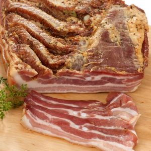 Bauch geräuchert in Scheiben